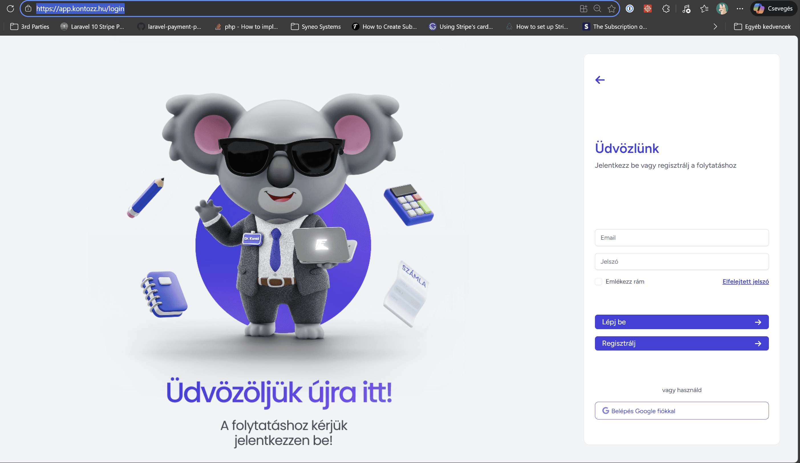 Once you have registered, you can log in by clicking on the "Log in" menu item on the Kontozz homepage or by visiting the following link: https://app.kontozz.hu/login.