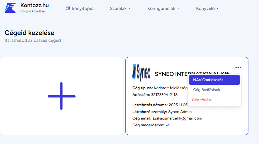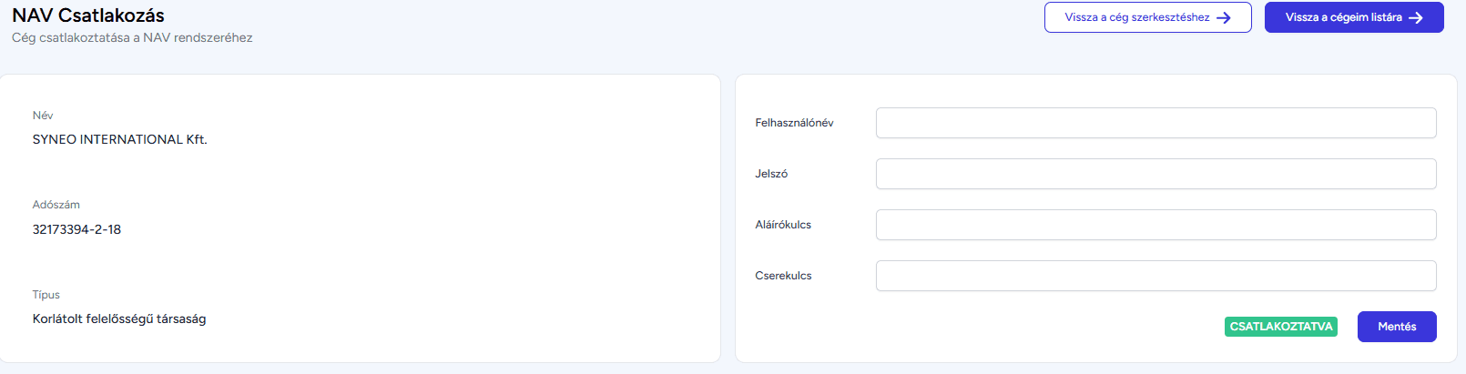 The Kontozz system allows you to connect your company to the NAV Online Invoice system, so that data reporting can take place automatically after invoices are issued.